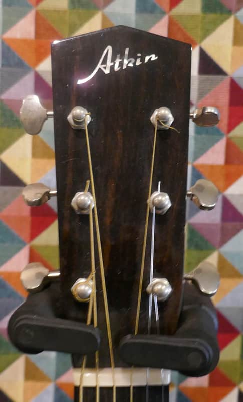 Atkin SJ Std. Small Jumbo,, spruce top Mahogany back and sides. Hand crafted by master luthier Aistair Atkin in Canterbury England, this is a bold voiced beautifully made guitar with a great action. Contact us for more information/photos.